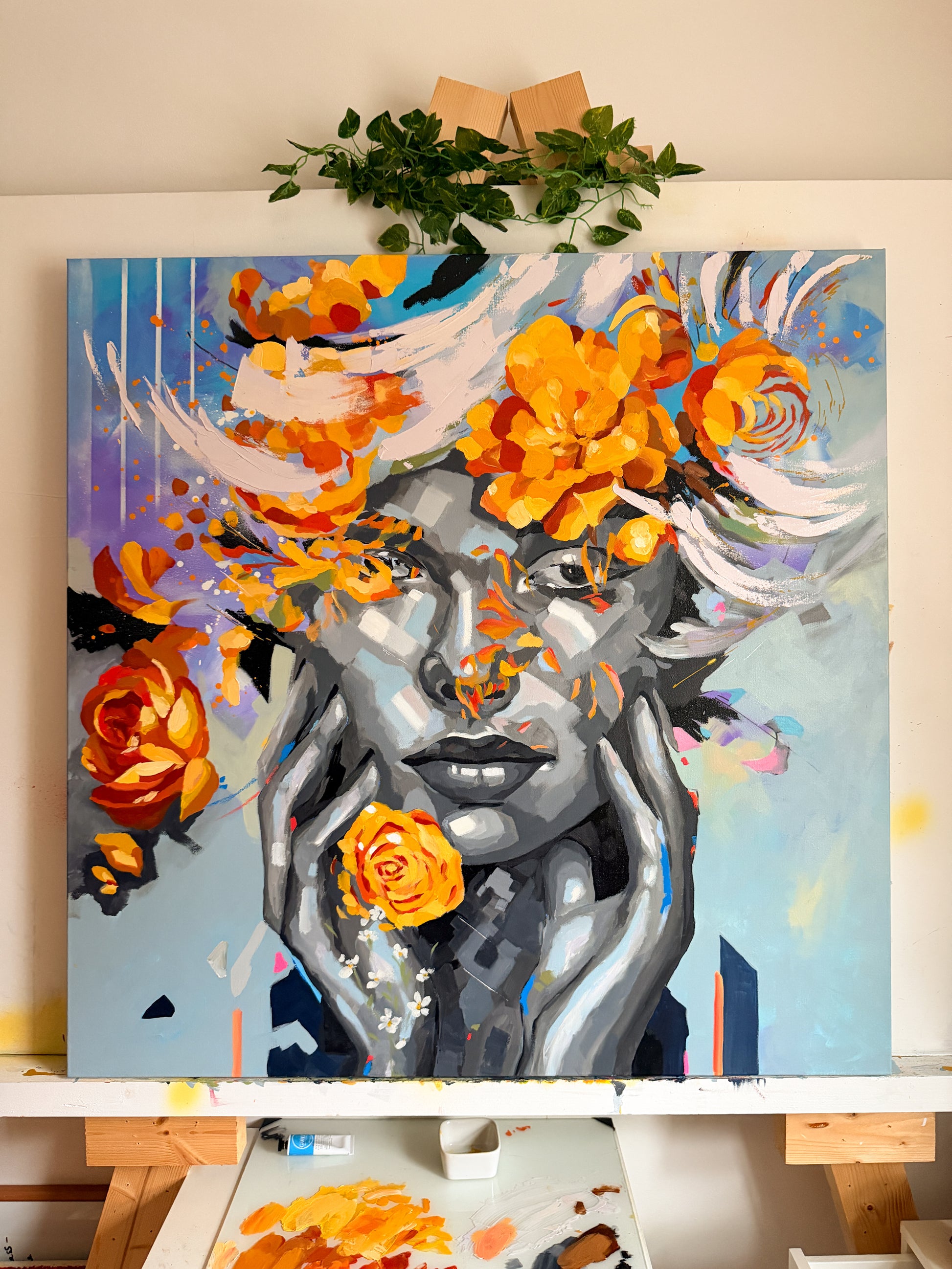 Created on a premium 100% cotton canvas using high quality heavy-body acrylics, mixed media and Gamblin oil paints.